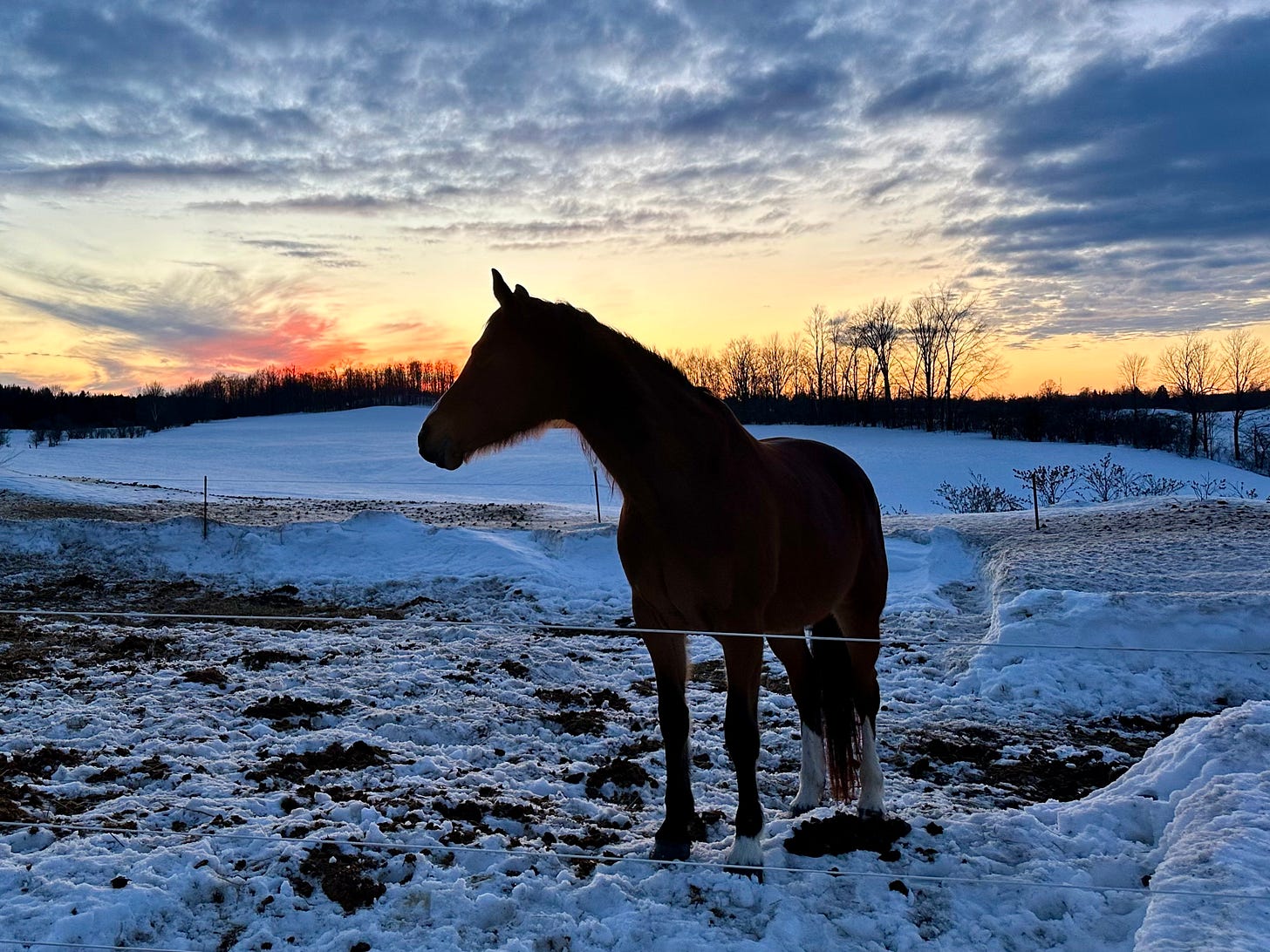 As the snow begins to melt, the mud reappears. As the day begins to lengthen, the sunsets are restored.